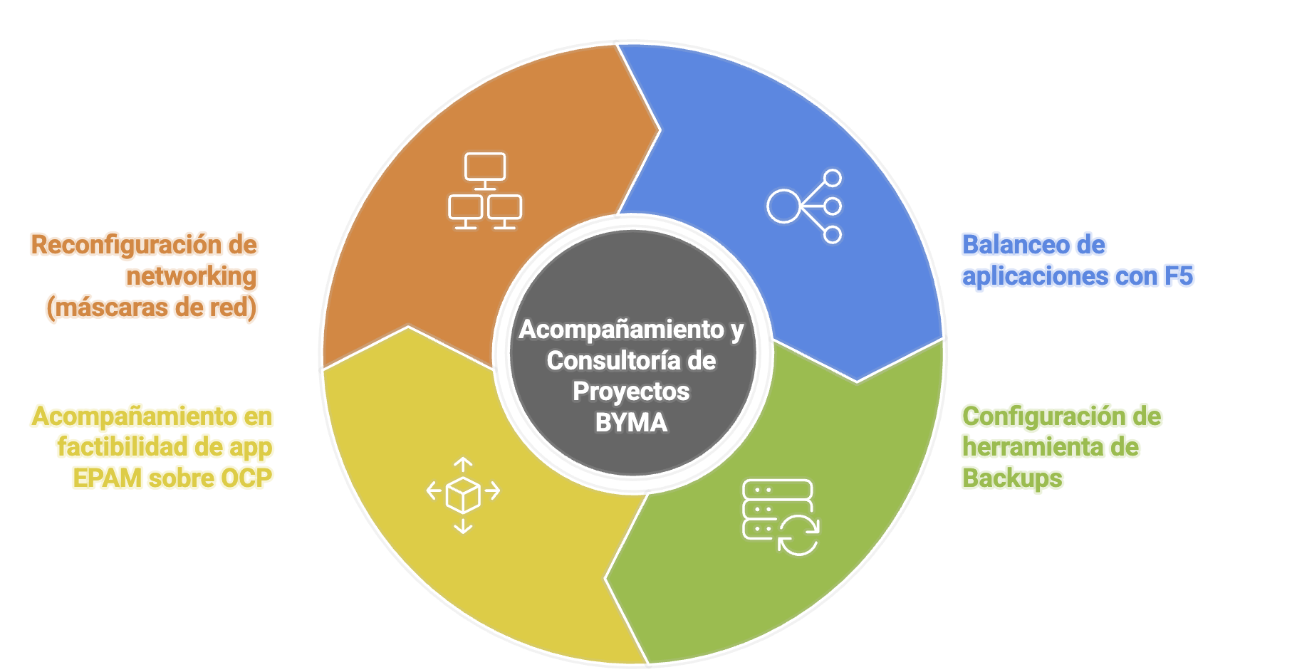 Se está estimando una capacidad de horas mensuales donde el equipo de servicio estará realizando actividades de acompañamiento de consultoría para aplicar mejoras, mantenimiento preventivo y/o correctivo previamente coordinadas con Byma. El objetivo es mantener de manera óptima la plataforma en los entornos de BYMA a través de personal calificado y certificado, asegurando la continuidad operacional mediante la implementación de recomendaciones y mejores prácticas de Red Hat.